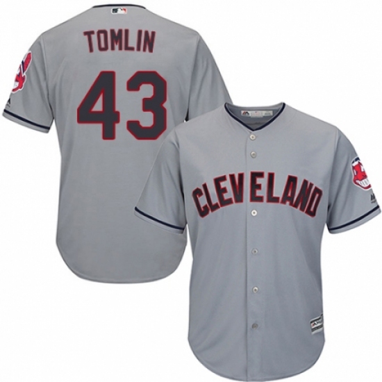 Youth Majestic Cleveland Indians #43 Josh Tomlin Replica Grey Road Cool Base MLB Jersey