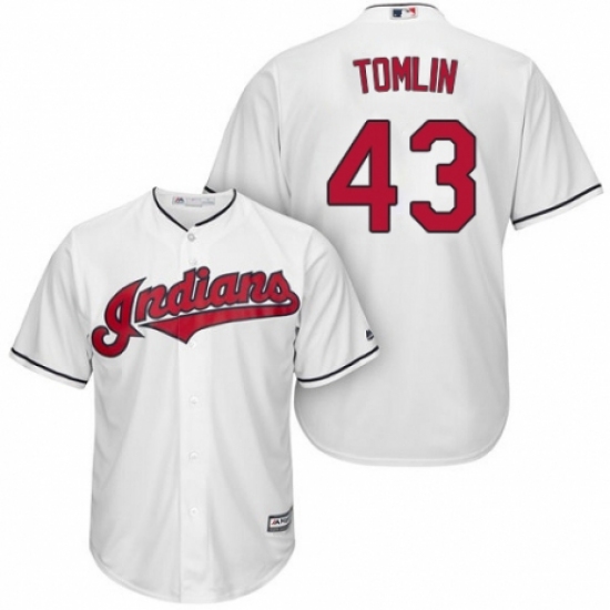 >Youth Majestic Cleveland Indians #43 Josh Tomlin Replica White Home Cool Base MLB Jersey