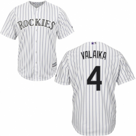 Men's Majestic Colorado Rockies #4 Pat Valaika White Home Flex Base Authentic Collection MLB Jersey