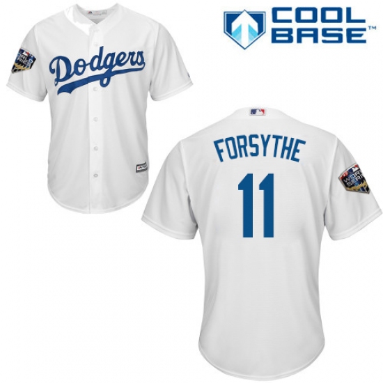 Youth Majestic Los Angeles Dodgers #11 Logan Forsythe Authentic White Home Cool Base 2018 World Series MLB Jersey