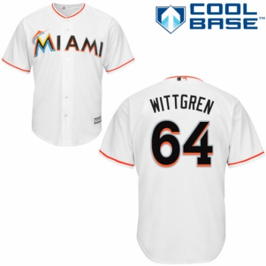 >Youth Majestic Miami Marlins #64 Nick Wittgren Authentic White Home Cool Base MLB Jersey