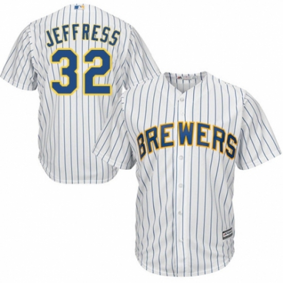 Youth Majestic Milwaukee Brewers #32 Jeremy Jeffress Authentic White Home Cool Base MLB Jersey