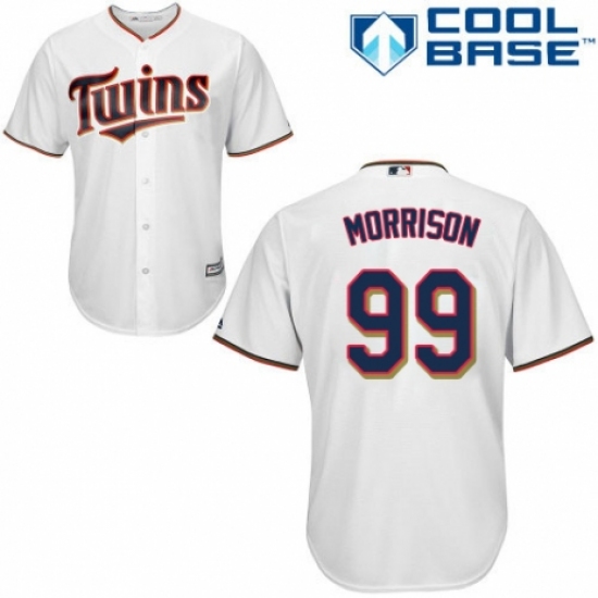 >Youth Majestic Minnesota Twins #99 Logan Morrison Replica White Home Cool Base MLB Jersey