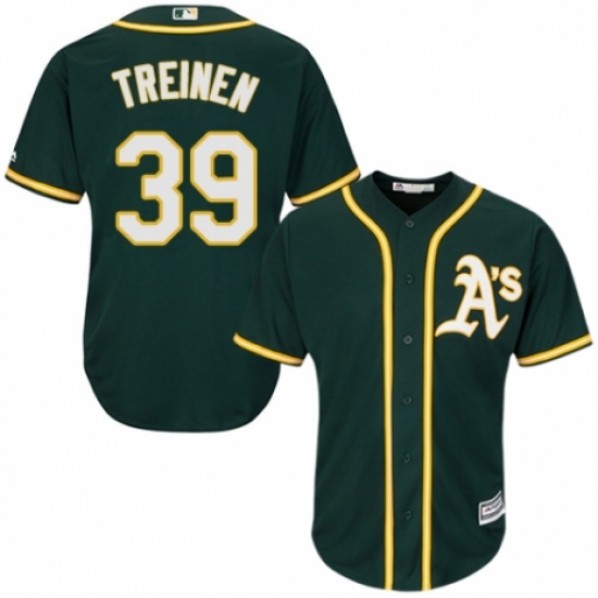 >Youth Majestic Oakland Athletics #39 Blake Treinen Replica Green Alternate 1 Cool Base MLB Jersey