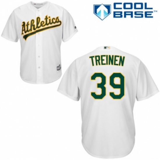 >Youth Majestic Oakland Athletics #39 Blake Treinen Replica White Home Cool Base MLB Jersey