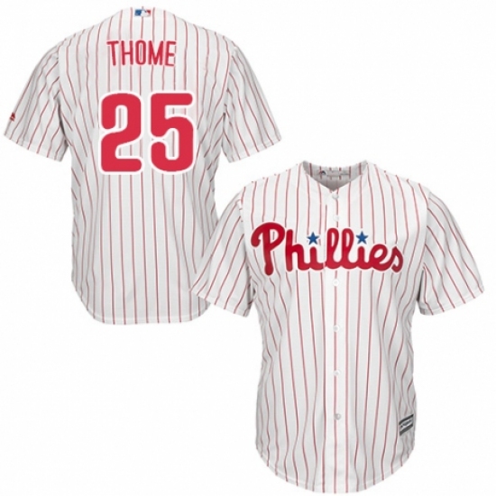 >Youth Majestic Philadelphia Phillies #25 Jim Thome Authentic White/Red Strip Home Cool Base MLB Jersey