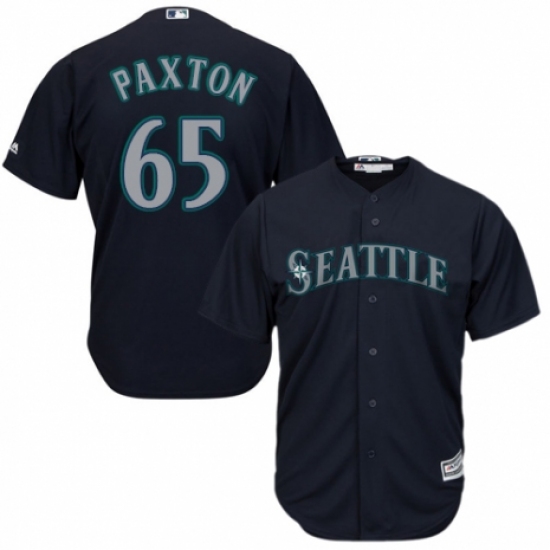 >Youth Majestic Seattle Mariners #65 James Paxton Replica Navy Blue Alternate 2 Cool Base MLB Jersey
