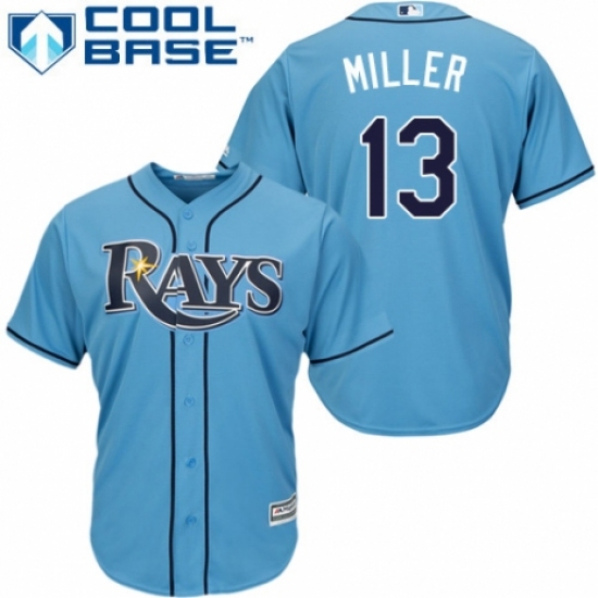 >Youth Majestic Tampa Bay Rays #13 Brad Miller Replica Light Blue Alternate 2 Cool Base MLB Jersey