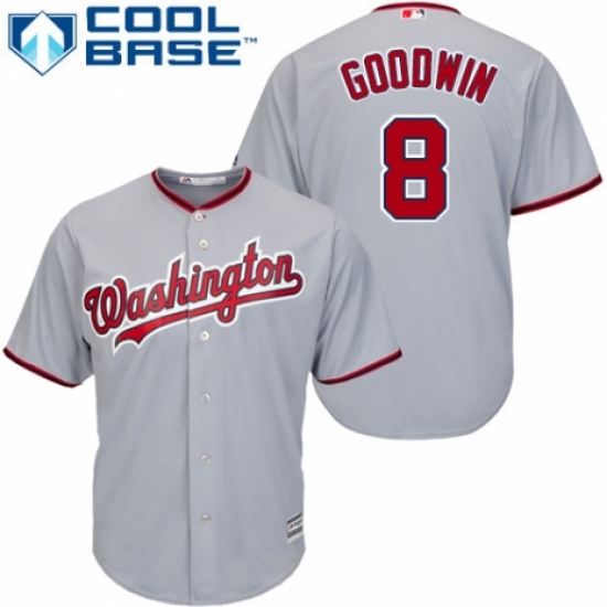 >Youth Majestic Washington Nationals #8 Brian Goodwin Replica Grey Road Cool Base MLB Jersey