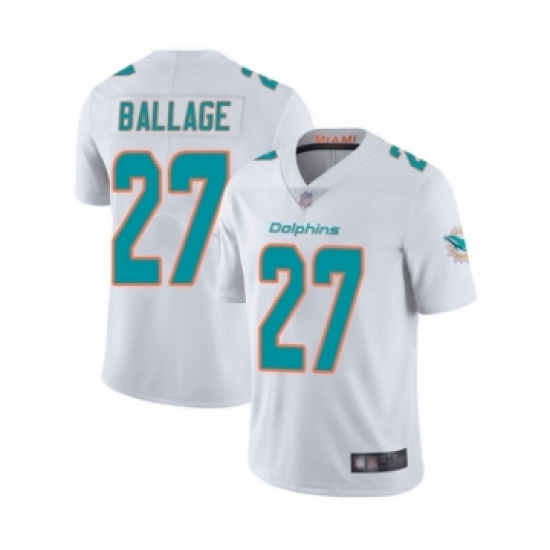 >Youth Miami Dolphins #27 Kalen Ballage White Vapor Untouchable Limited Player Football Jersey