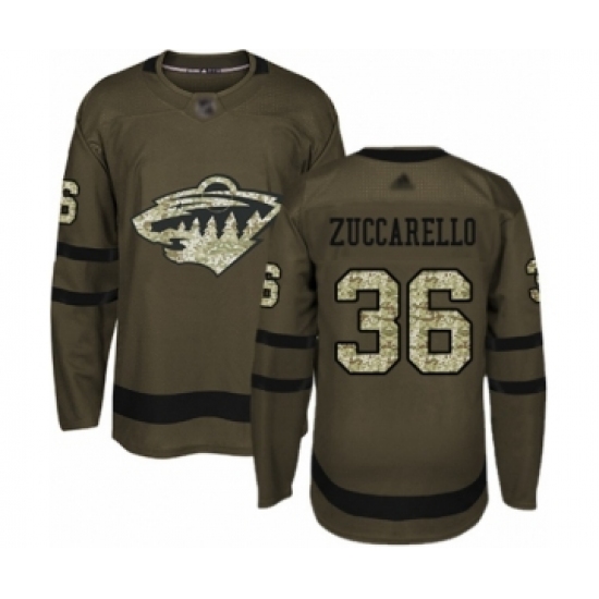 Women's Minnesota Wild #36 Mats Zuccarello Authentic Green Salute to Service Hockey Jersey