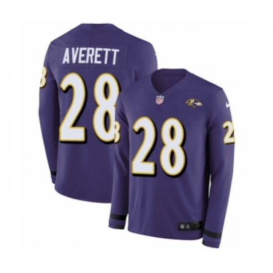 Youth Nike Baltimore Ravens #28 Anthony Averett Limited Purple Therma Long Sleeve NFL Jersey