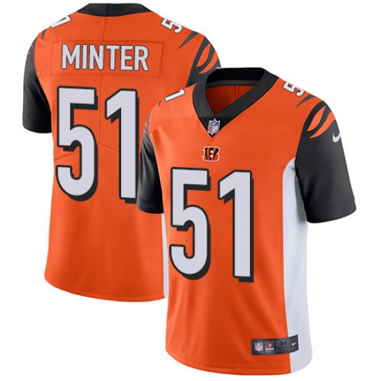 Home>NFL>Cincinnati Bengals>Kevin Minter>Youth Nike Cincinnati Bengals #51 Kevin Minter Vapor Untouchable Limited Orange Alternate NFL Jersey
