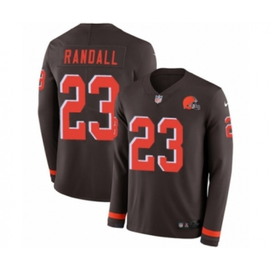 >Youth Nike Cleveland Browns #23 Damarious Randall Limited Brown Therma Long Sleeve NFL Jersey