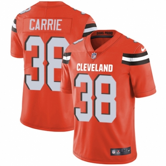 Youth Nike Cleveland Browns #38 T. J. Carrie Orange Alternate Vapor Untouchable Limited Player NFL Jersey