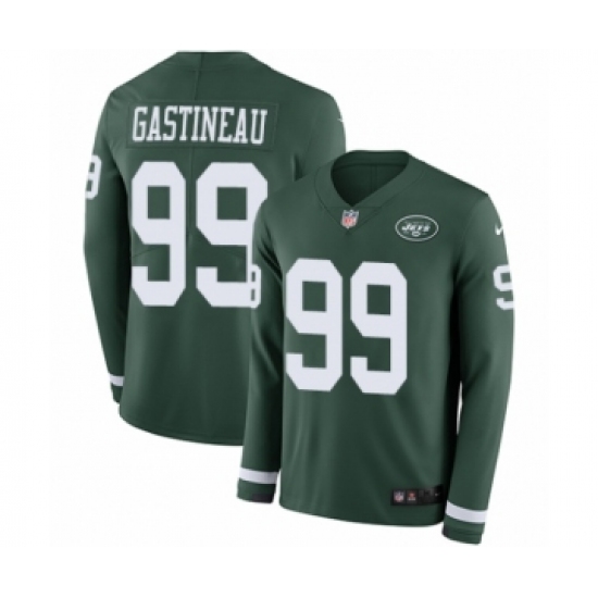 >Youth Nike New York Jets #99 Mark Gastineau Limited Green Therma Long Sleeve NFL Jersey