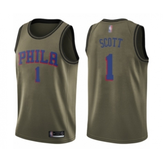 >Youth Philadelphia 76ers #1 Mike Scott Swingman Green Salute to Service Basketball Jersey