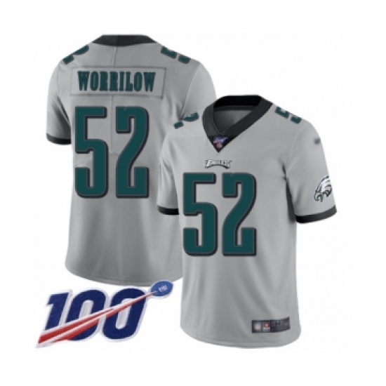 >Youth Philadelphia Eagles #52 Paul Worrilow Limited Silver Inverted Legend 100th Season Football Jersey