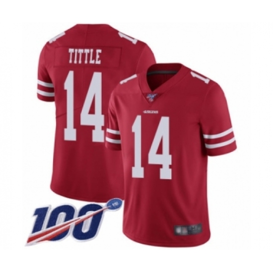>Youth San Francisco 49ers #14 Y.A. Tittle Red Team Color Vapor Untouchable Limited Player 100th Season Football Jersey