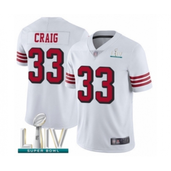 Women's San Francisco 49ers #33 Roger Craig White Vapor Untouchable Limited Player Super Bowl LIV Bound Football Jersey