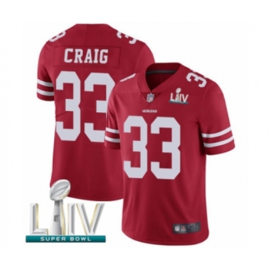 >Youth San Francisco 49ers #33 Roger Craig Red Team Color Vapor Untouchable Limited Player Super Bowl LIV Bound Football Jersey