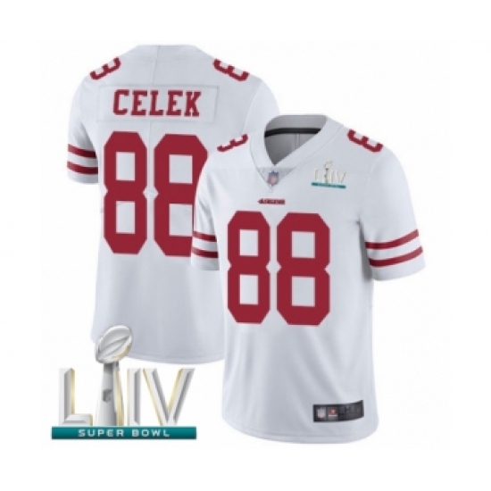 >Youth San Francisco 49ers #88 Garrett Celek White Vapor Untouchable Limited Player Super Bowl LIV Bound Football Jersey