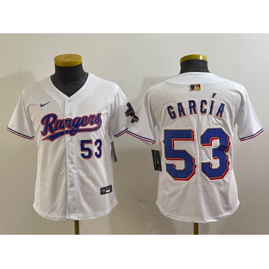 Youth Texas Rangers #53 Adolis Garcia White 2024 Gold Collection Limited Cool Base Jersey