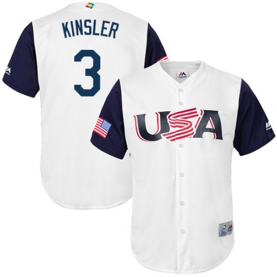 Youth USA Baseball Majestic #3 Ian Kinsler White 2017 World Baseball Classic Replica Team Jersey