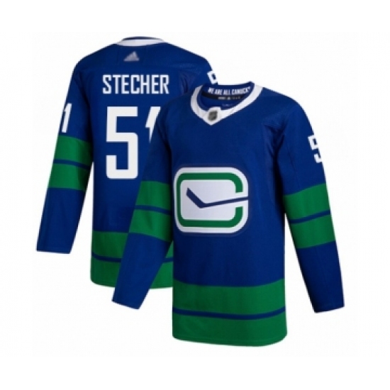 >Youth Vancouver Canucks #51 Troy Stecher Authentic Royal Blue Alternate Hockey Jersey