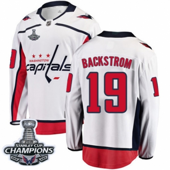 Men's Adidas Washington Capitals #19 Nicklas Backstrom Authentic White Away 2018 Stanley Cup Final Champions NHL Jersey
