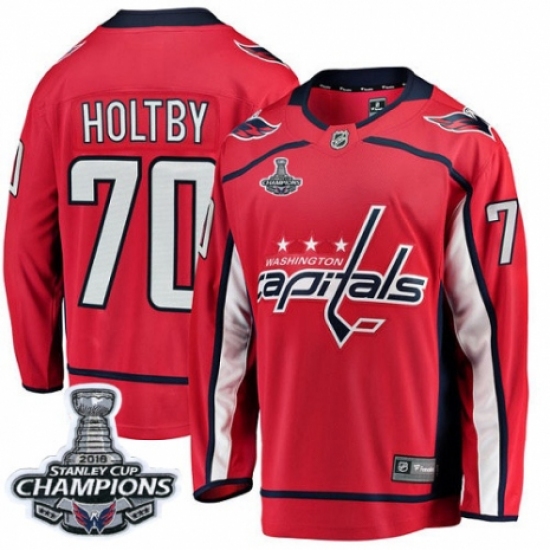 >Youth Washington Capitals #70 Braden Holtby Fanatics Branded Red Home Breakaway 2018 Stanley Cup Final Champions NHL Jersey