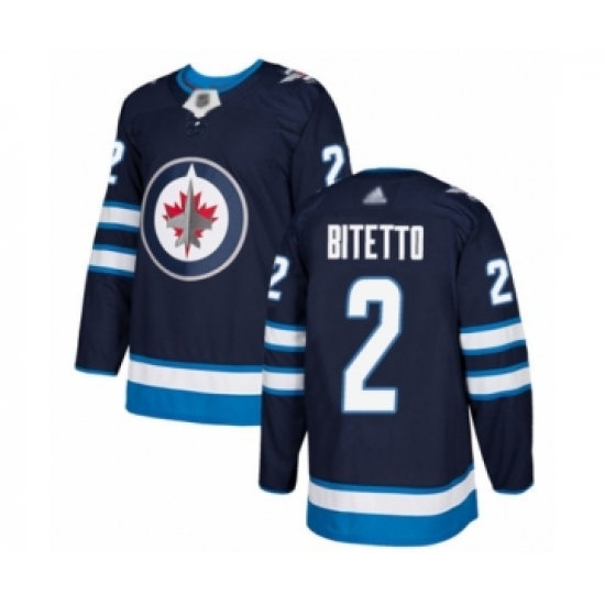 Men's Winnipeg Jets #2 Anthony Bitetto Authentic Navy Blue Home Hockey Jersey